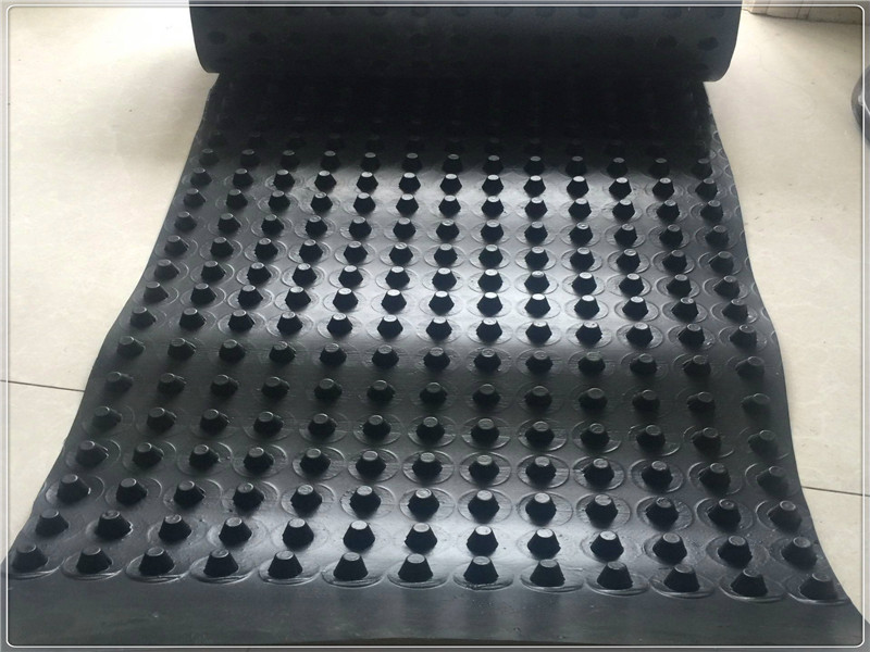 排水板鋪設(shè)時(shí)自然展開、疏松地鋪設(shè)于規(guī)劃好的位置。排水板可按排水坡度的縱向或橫向統(tǒng)一的方向鋪設(shè)。搭接必須按照排水坡度的方向搭接,不允許逆向搭接。個(gè)別部位需要臨時(shí)固定時(shí),采用瀝青馬蹄脂點(diǎn)式黏結(jié)固定。排水板的終止收口需要結(jié)合建筑部位設(shè)計(jì)確定。