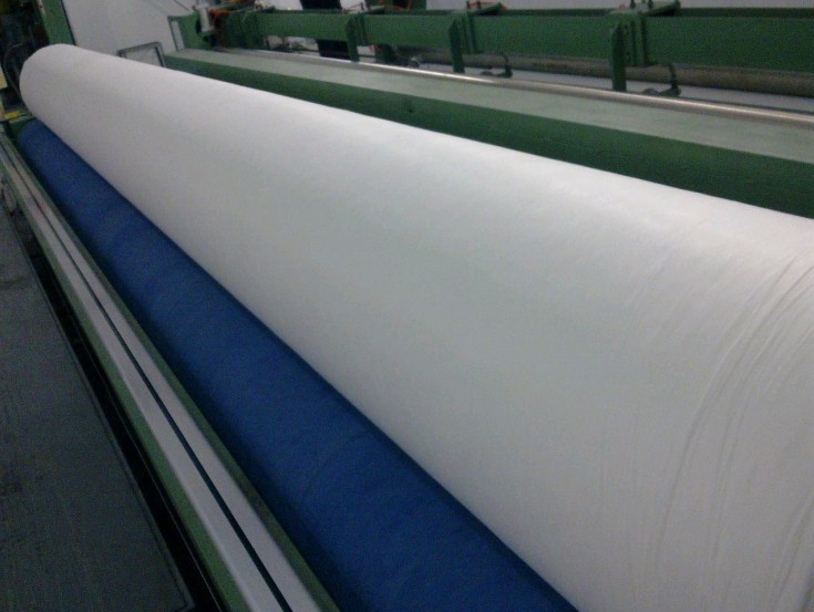 土工布是目前應(yīng)用最廣泛的非織造土工布之一。纖維經(jīng)過開松混合、梳理(或氣流)成網(wǎng)、鋪網(wǎng)、牽伸及針刺固結(jié)最后形成成品,針刺形成的纏結(jié)強(qiáng)度足以滿足鋪放時(shí)的抗張應(yīng)力,不會(huì)造成撕破、頂破。由于其厚度較大、結(jié)構(gòu)蓬松,且纖維通道呈三維結(jié)構(gòu),過濾效率高,排水性能好。其滲透系數(shù)達(dá)10-1~10-2,與沙粒濾料的滲透系數(shù)相當(dāng),但鋪起來更方便,價(jià)格也不貴,因此用作反濾和排水最為合適。還具有一定增強(qiáng)和隔離功能,也可以和其它土工合成材料復(fù)合,具防護(hù)等多種功能。由于非織造土工布具反濾和排水的特點(diǎn),因此在水力學(xué)性能方面要特別予以重視,一是有效孔徑;二是滲透系數(shù)。要利用非織造布多孔的性質(zhì),使孔隙分布有利于截留細(xì)小顆粒泥土又不致于淤堵,這必須結(jié)合工程的具體要求,予以滿足。